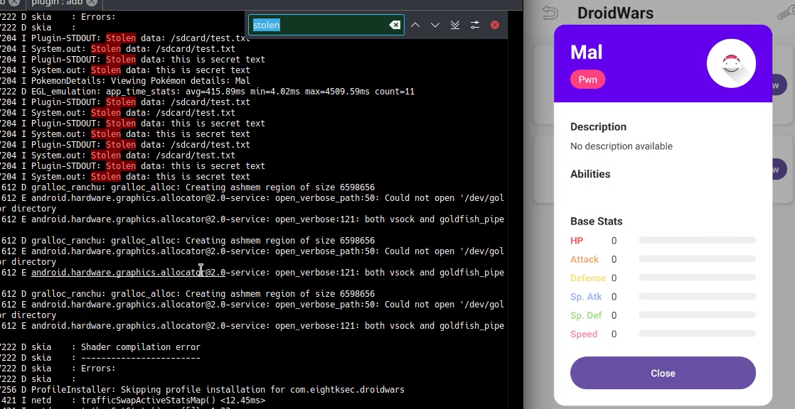$ adb push com.eightksec.droidwars.plugin.Pwn.dex /sdcard/PokeDex/plugins
